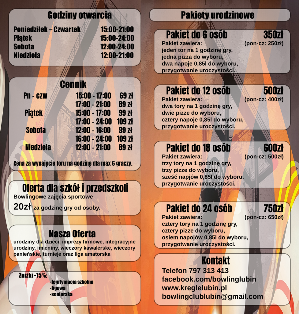 Pn-Czw 15:00-21:00 Pt 15:00-00:00 So 12:00-00:00 Nd 12:00-21:00